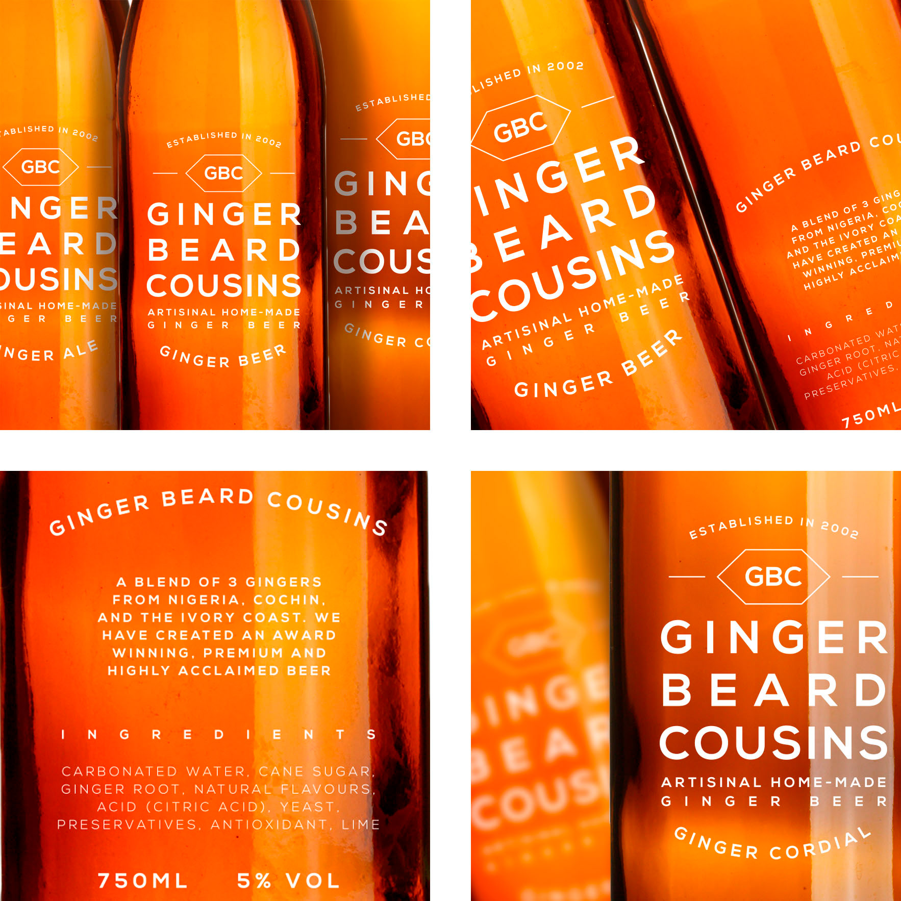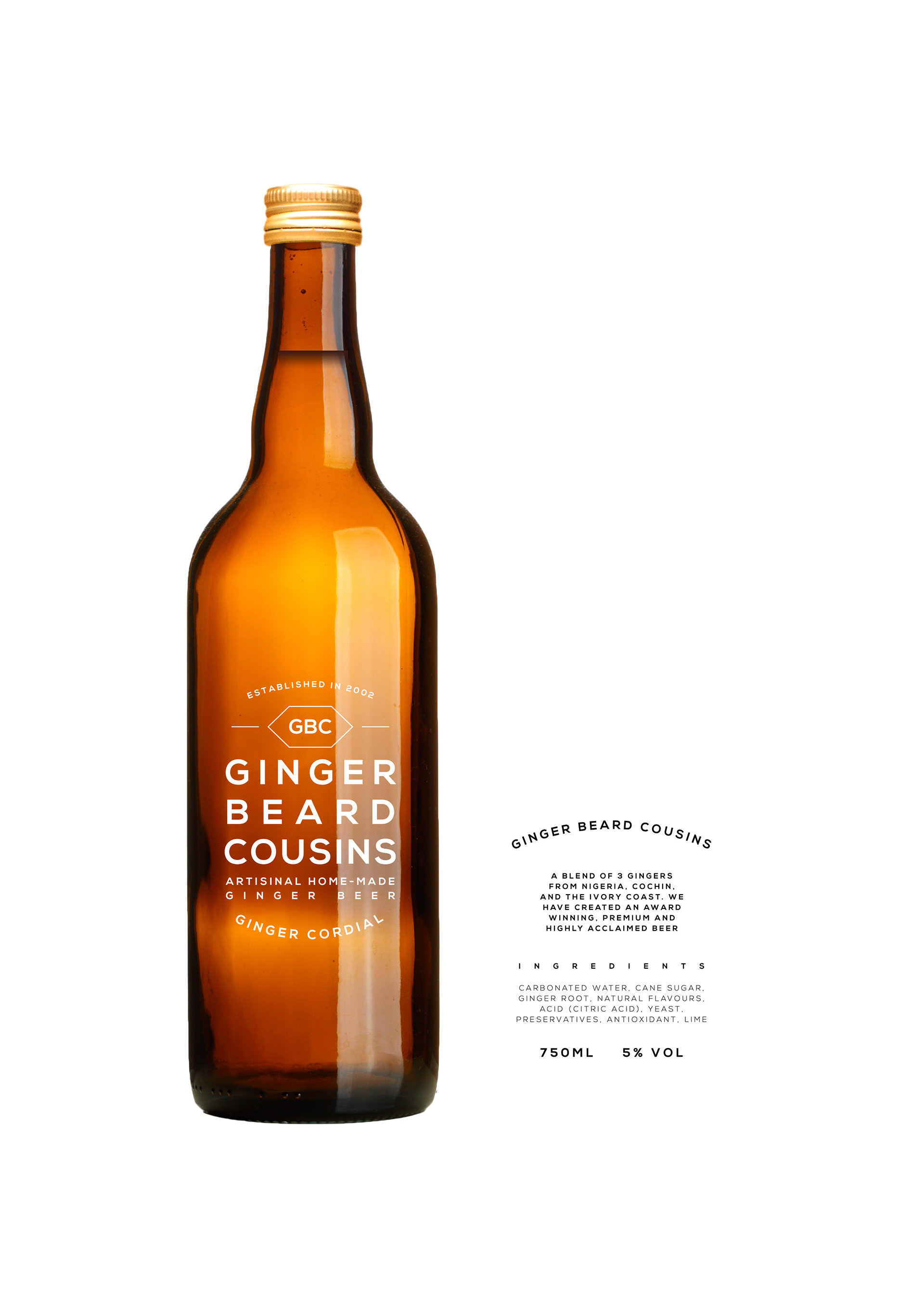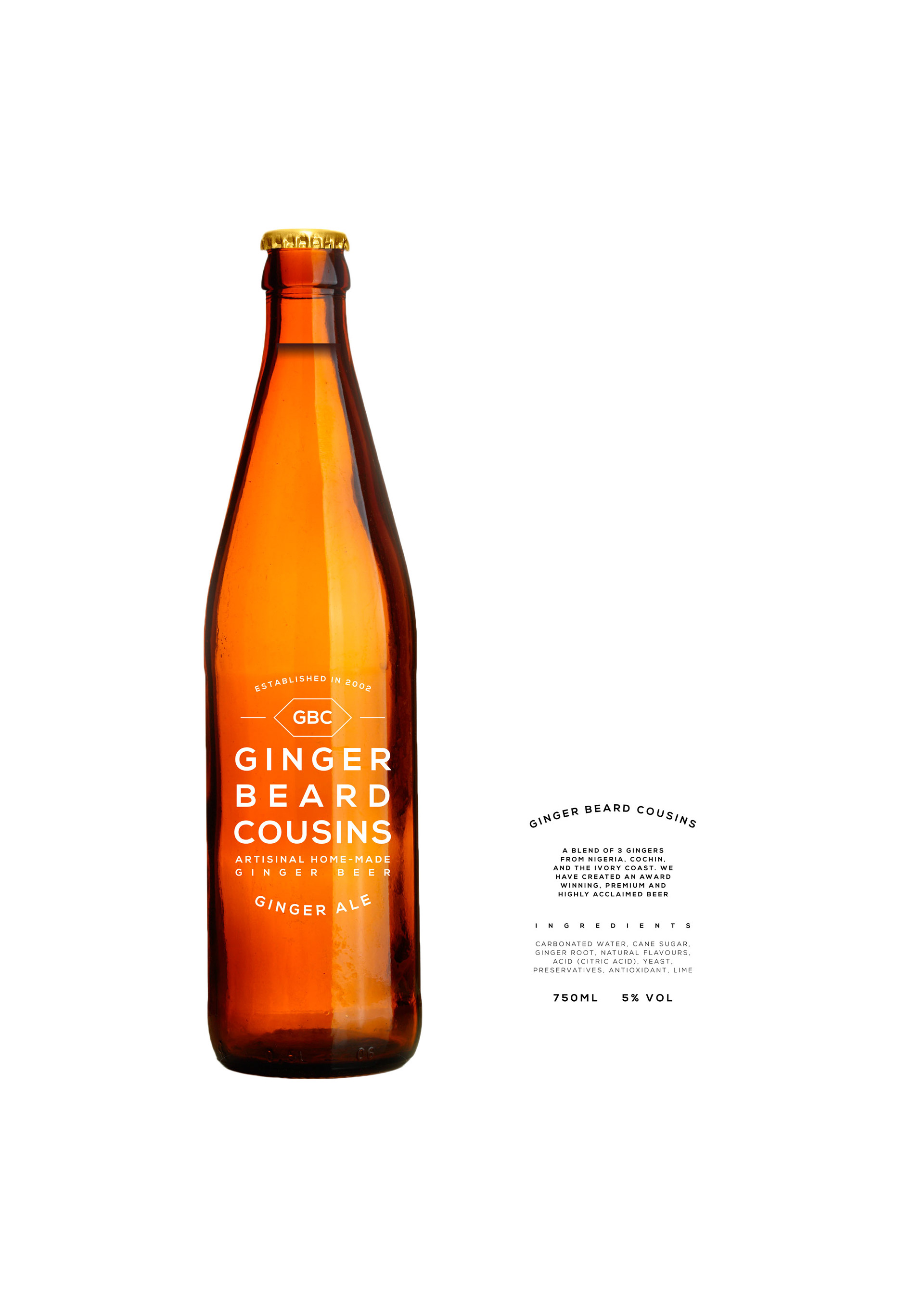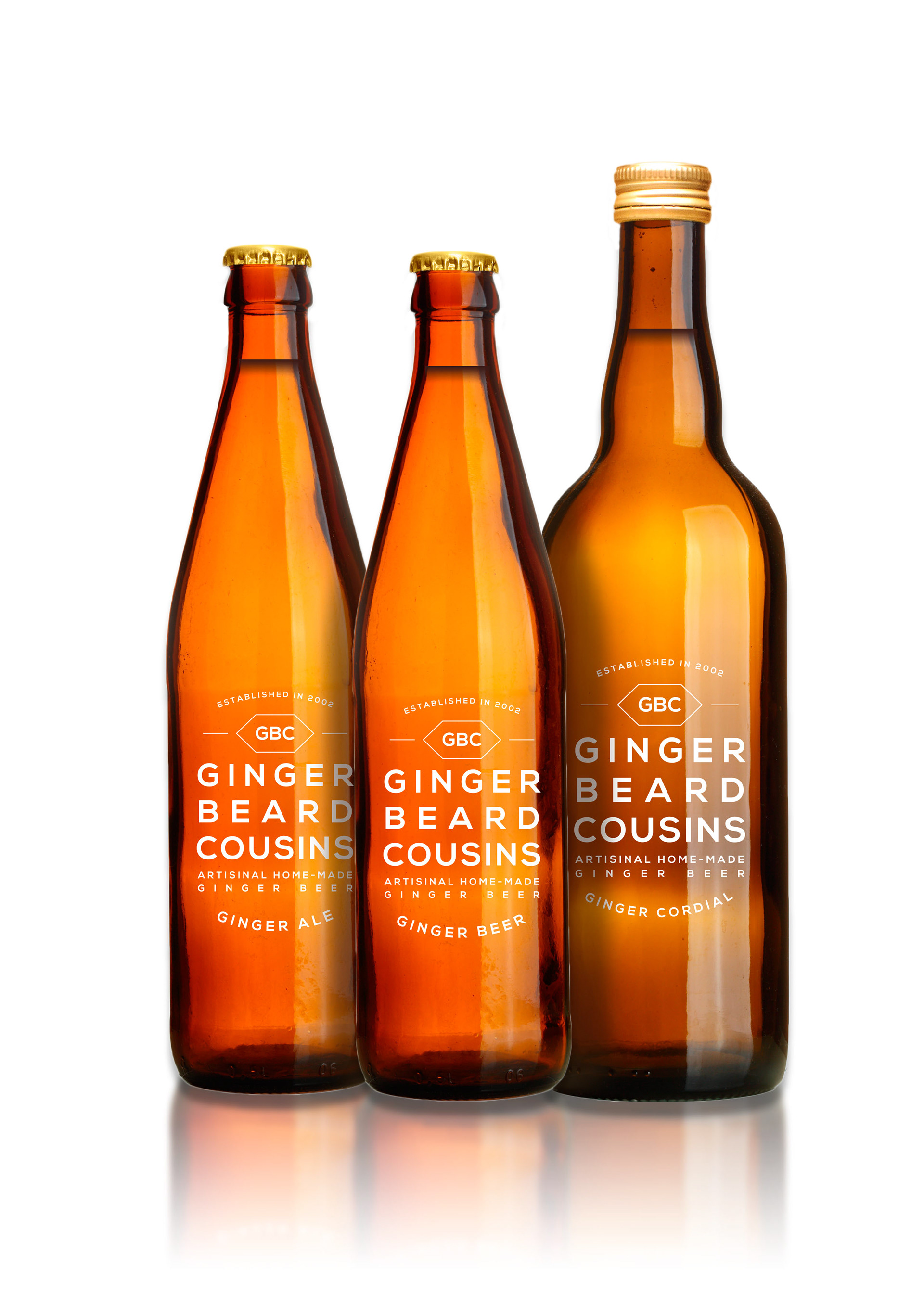 Brand concept, logo design and packaging design for Ginger Beard Cousins ginger beer.
